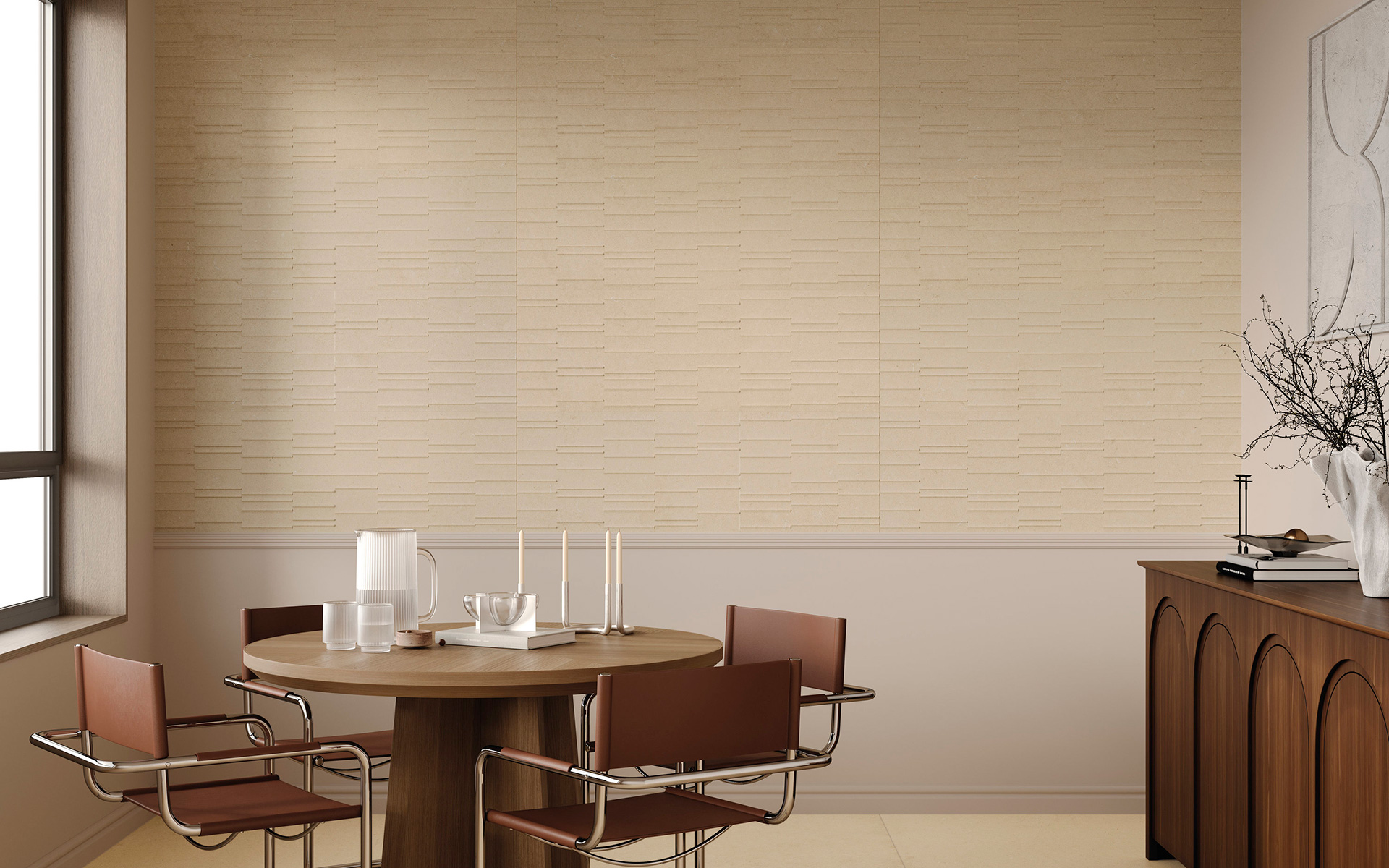 An English stone of noble heritage is reborn in a project that seamlessly blends aesthetic exploration with cutting-edge technology, enhancing its qualities with a distinctive contemporary touch.